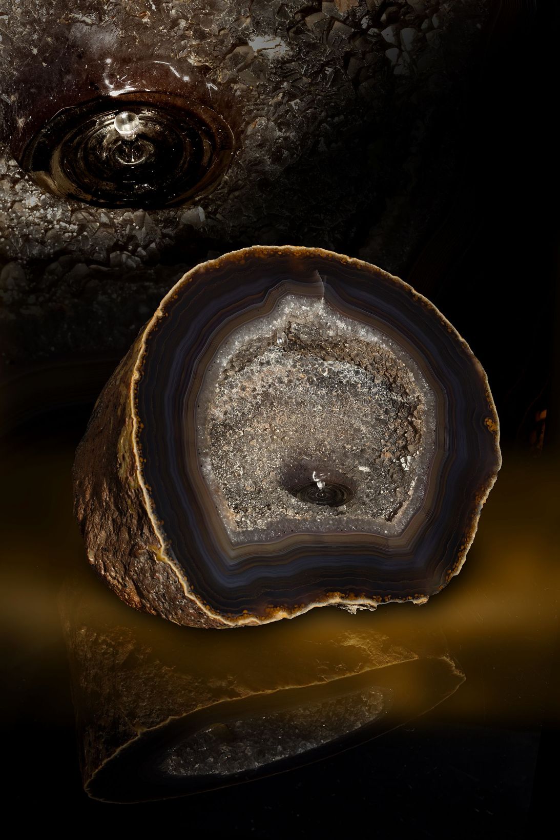 Der Preisträger hat seine Wettbewerbsarbeit mit „Steter Tropfen höhlt den Stein“ betitelt. „Im Mittelpunkt steht eine Achatdruse, in deren Zentrum eine Wasserlache aus Bergkristall erstrahlt. Diese ist so gestaltet, als hätte sich gerade ein Wassertropfen hineingesenkt, dessen Aufprall feine, wellenförmige Kreise entstehen ließ. In der Mitte erhebt sich eine kleine Wassersäule – ein Moment, der die Lebendigkeit und die Dynamik des Elements Wasser einfängt. Am oberen Rand hat sich bereits der nächste Tropfen gebildet, wie aus einer zarten Quelle hervorgebracht. Er steht kurz vor seinem Fall, bereit, ein neues Muster zu schaffen und seine Energie freizusetzen. Das Werk zeigt die gewaltige aber stille Kraft des Elements Wasser“ so der Preisträger. Jurymitglied Pierre Koukjian lobte die „minimalistische und dennoch vortrefflich gelungene Umsetzung des gestellten Wettbewerbsthemas – ein Stück bei dem man wirklich das Gefühl hat, wie der Tropfen fällt und beim Auftreffen auf die Wasseroberfläche gleichförmige nach außen abklingenden Wellenbewegungen hervorruft.“ Die Jury entschied auch hier mehrstimmig.